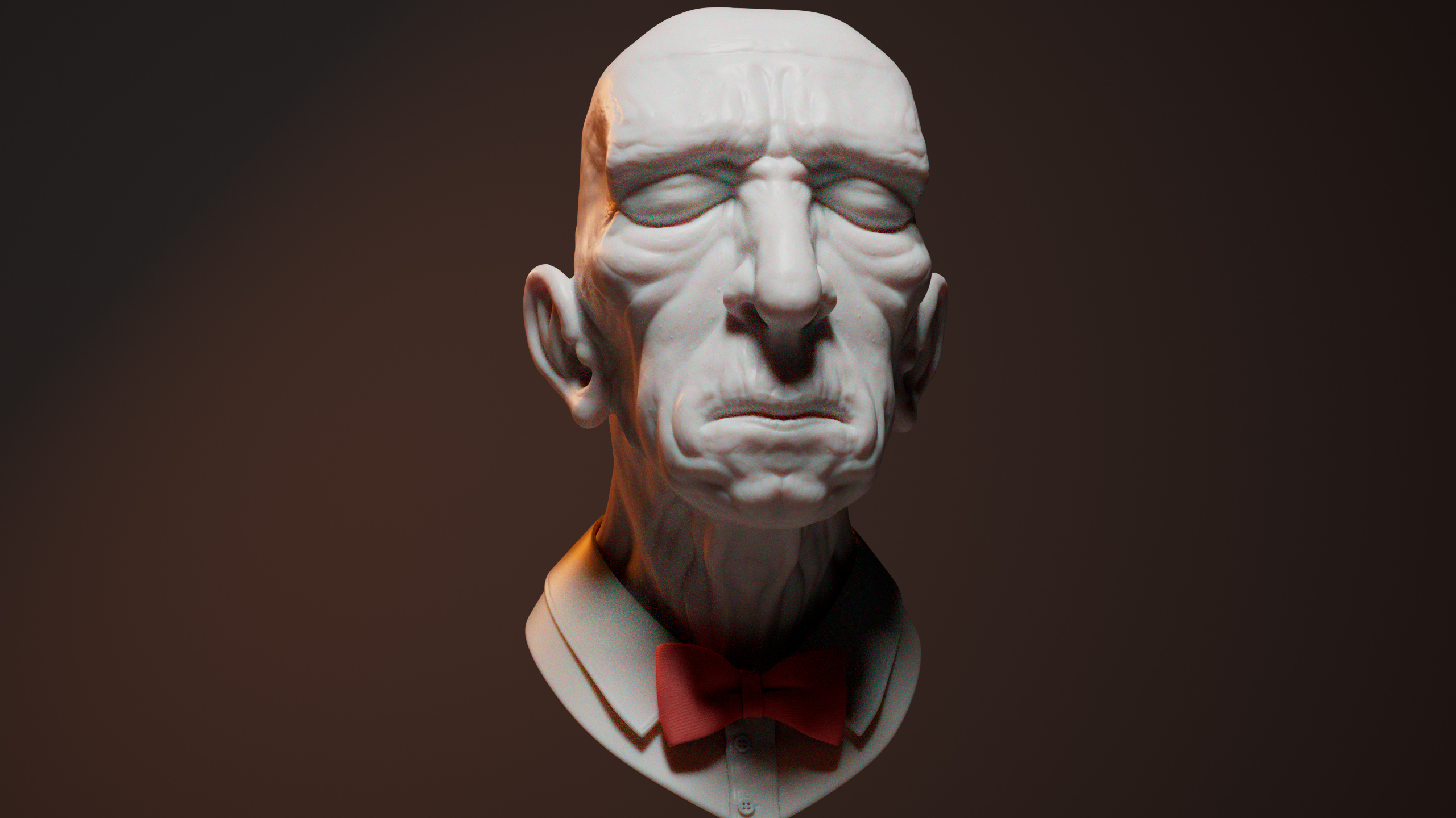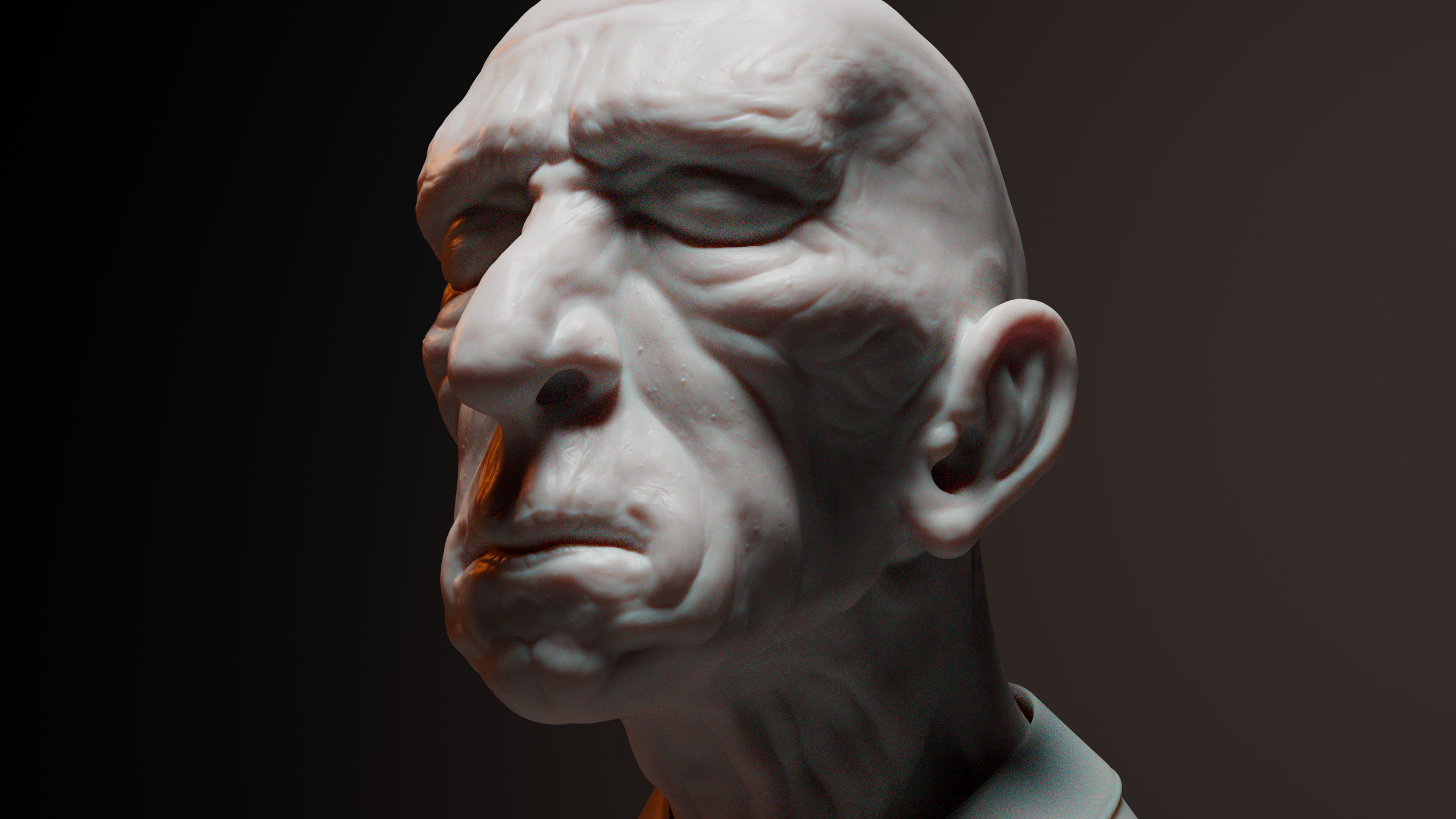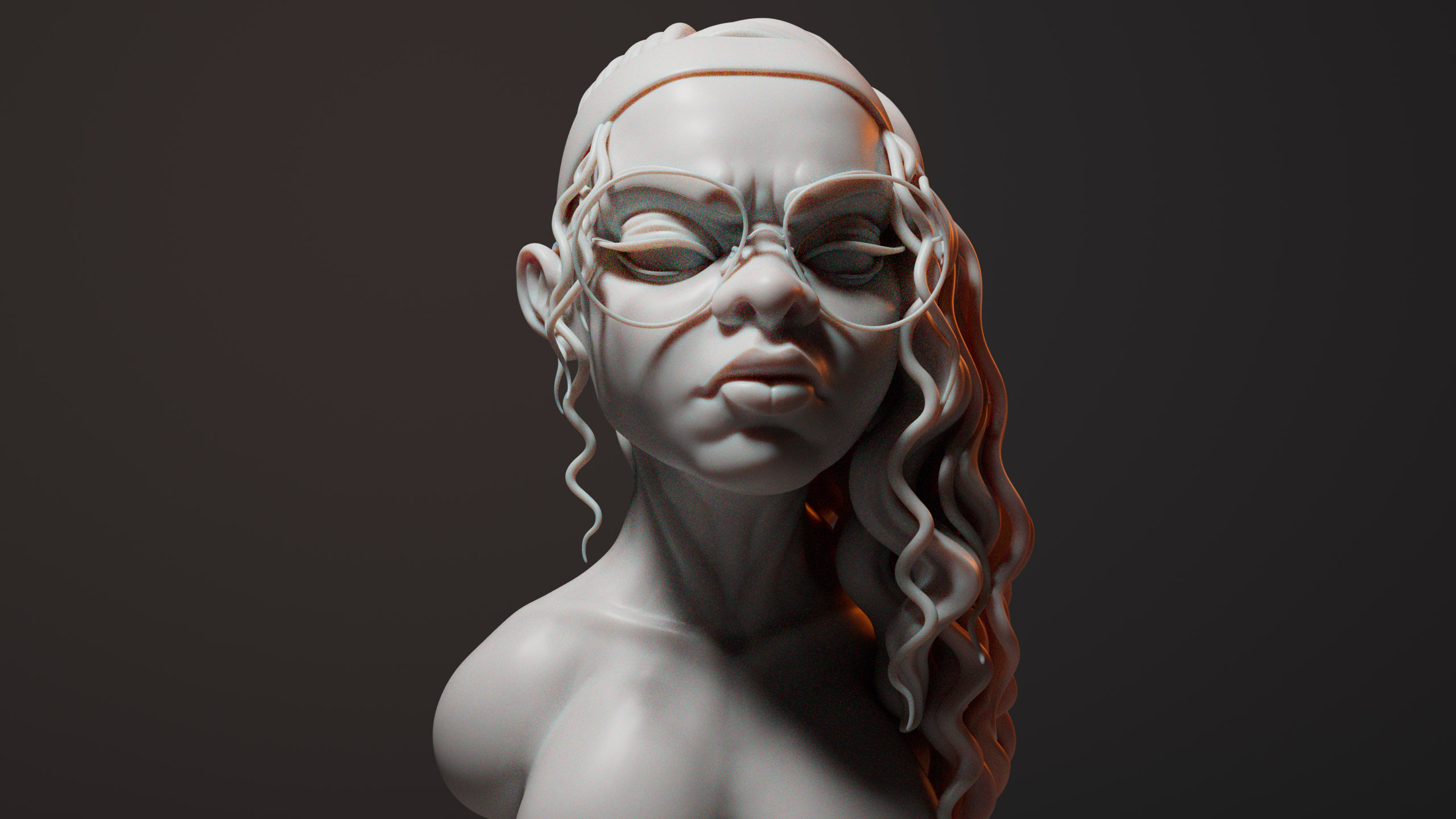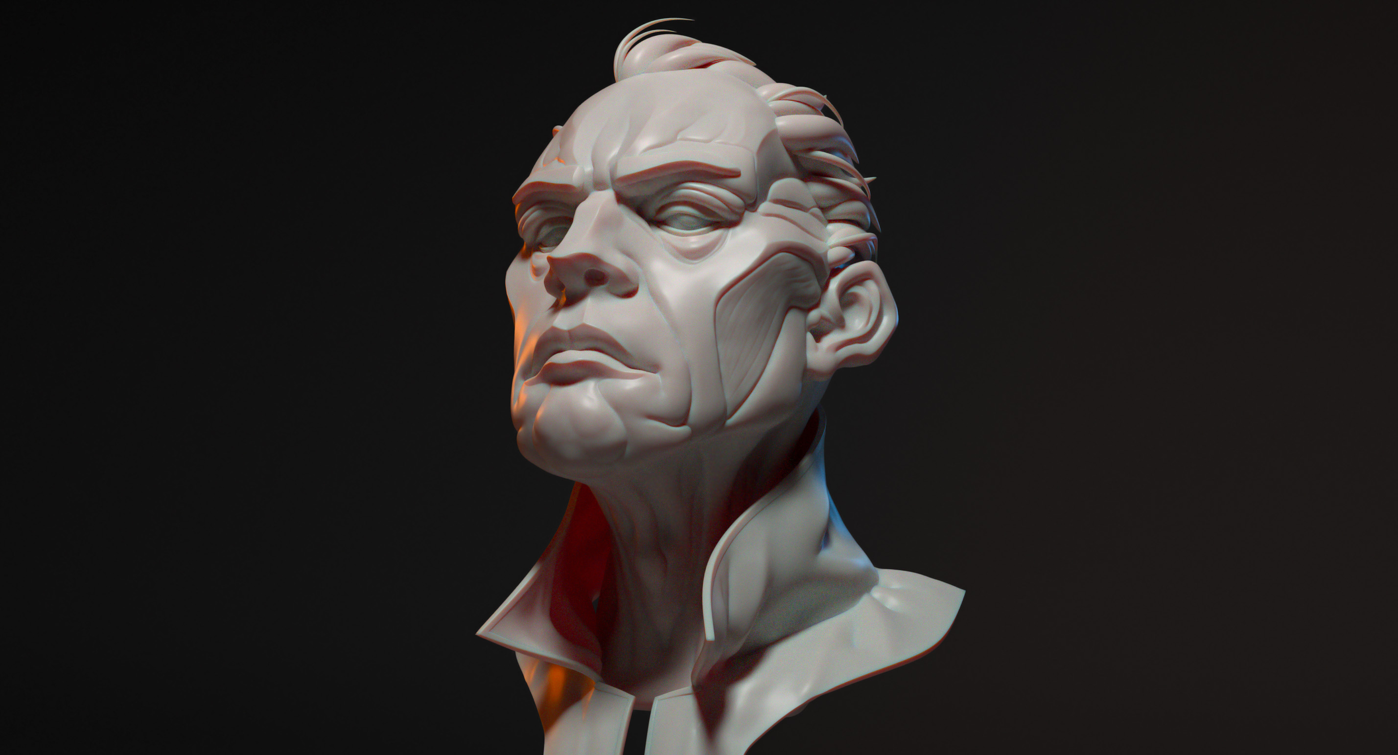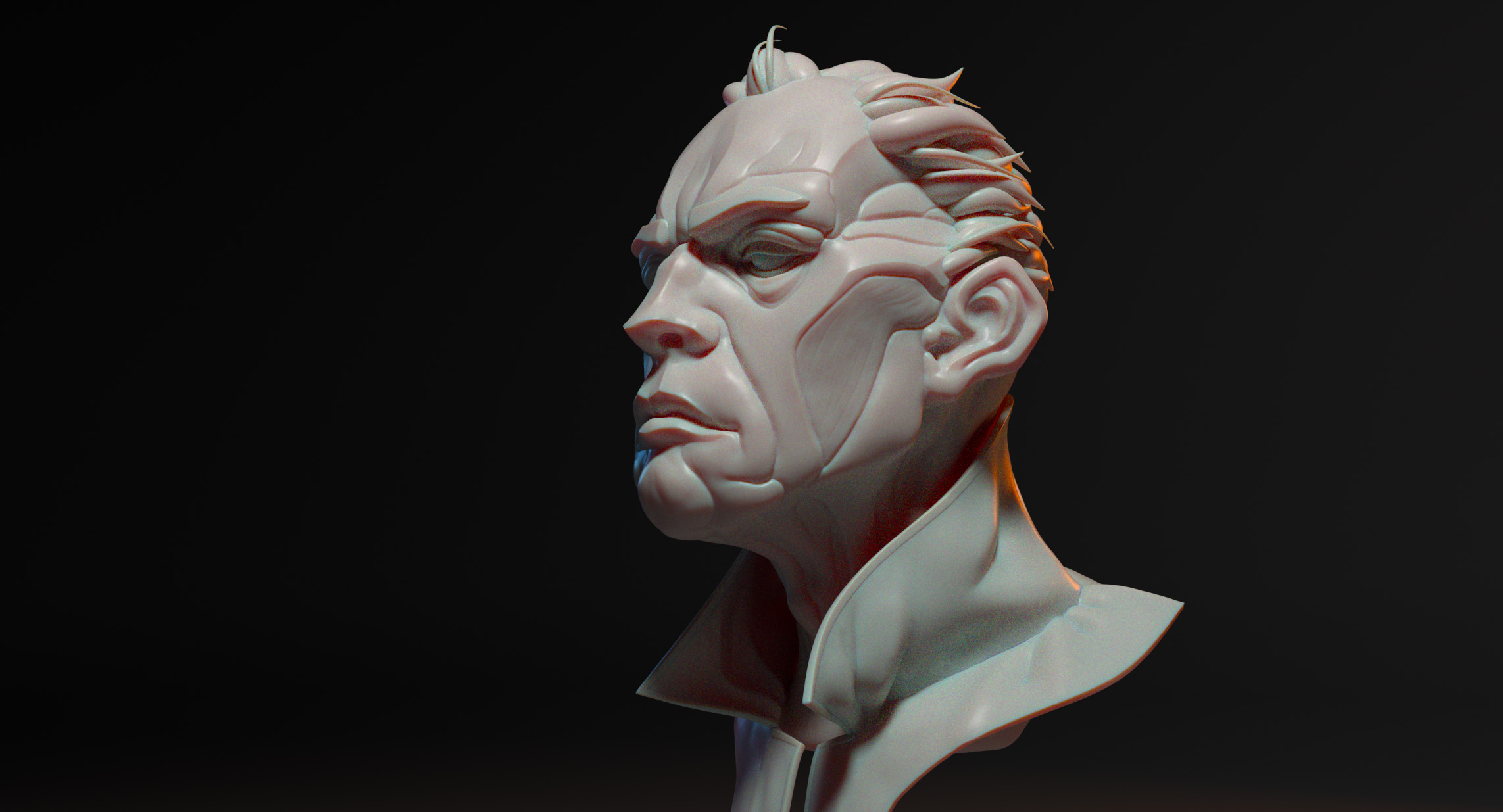 (2025) This was a sculpting exercise I did in Zbrush. For a few weeks I wanted to challenge myself to leave my comfort-zone and specifically focus on character heads and faces. I would do daily sculpts in multiple artstyles over the course of these weeks, and render a few of them with Arnold in Maya.